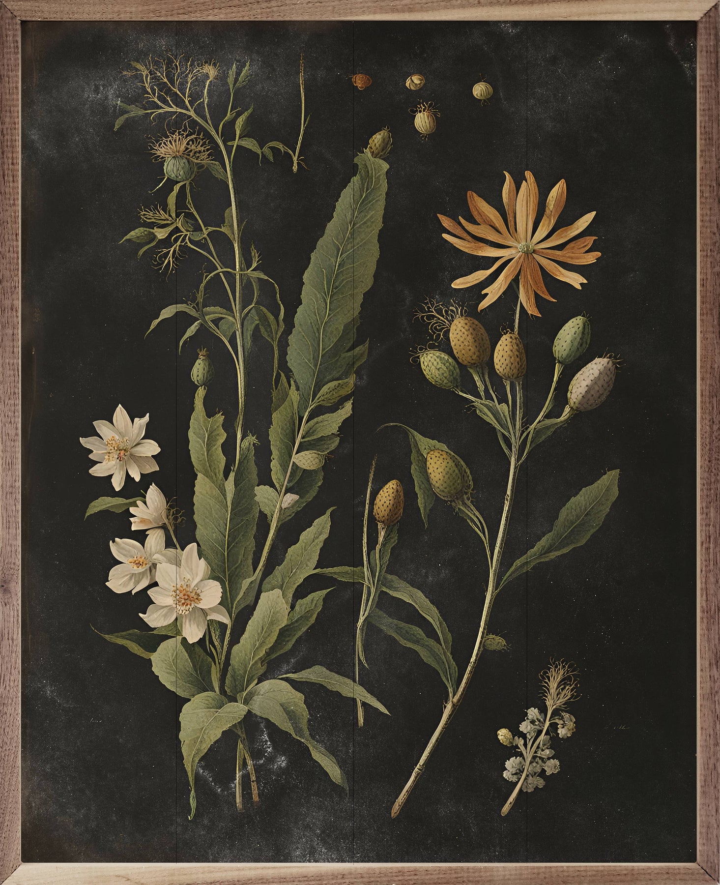 Vintage Cream Floral Print Black: 8 x 10 x 1.5